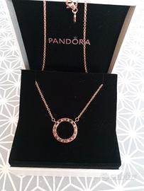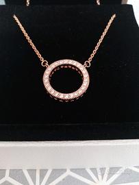 Collana Da Donna Di Pandora. Collana Con Pendente A Cerchio Realizzata In Pandora Rose E Zirconia Cubica. Collana Della Lunghezza Di 45 Cm.