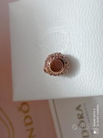 Originali cristalli rosa e zirconia cubica arricchiscono il design a cuore insieme ad una coccinella con pois in smalto rosa.
