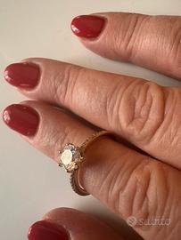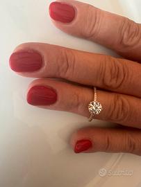 Aggiungi luminosità al tuo look. Questo anello placcato oro 14k presenta una grande zirconia cubica incastonata a griffe che crea l'effetto di una corona regale sulla pietra solitaria. Rifinito con pietre più piccole nella fascia per un look unico.