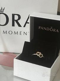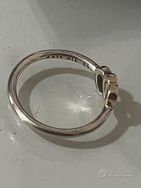 Pandora bellissimo anello cuori intrecciati in oro giallo 14 k e argento Condizioni ottime Misura 50, taglia 10