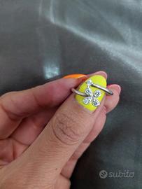 Vendo splendido anello originale Pandora modello "Fiore Luminoso" (Four-Petal Flowers). L’anello è realizzato in Argento Sterling 925 e presenta un design a fascia incrociata molto elegante, decorato con un fiore composto da quattro pietre di zirconia cubica scintillanti. Il gioiello è in ottimo stato, tenuto con estrema cura e privo di graffi evidenti. Le pietre sono tutte presenti e perfettamente brillanti.