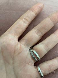 Anello di Pandora originale con 2 fasce intrecciate e pavè. L'anello è realizzato in argento sterling 925. La prima fascia è decorata esternamente da un pavè di pietre in zirconia cubica. Taglia 16.9 mm/13,5.