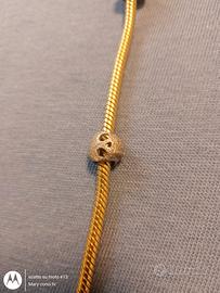 bracciale pandora originale come certificato in foto , ciondolo ferro di cavallo,quadrifoglio,e teschio,più due clip ferma ciondolo.