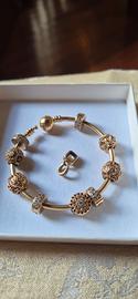 Vendo rarissimo bracciale rigido Pandora Moments originale, interamente in oro 14 carati con chiusura sferica logata. Il bracciale è completo di 10 elementi autentici Pandora in oro 14k: