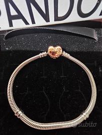 Bracciale Pandora moment chiusura oro rosa come nuovo. Taglia 19. Filettature e chiusura perfetti, punzonatura ALE MET tutto visibile nelle foto. Si invia con la sua bustina e scatolina originali. Prezzo lievemente trattabile
