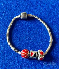 Pandora bracciale originale da donna made in Italy - con 3 charms,incluso set completo - scatola + documenti Pandora ( full set )