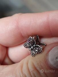 Una forma tridimensionale e un pavé rosa scintillante danno vita a questo charm in Argento Sterling originale 925. Le tonalità rosa dei cristalli e le pietre chiare sulle ali insieme alla lavorazione centrale creano un gioiello dal design straordinario.