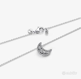 Collana PANDORA, argento 925 “Luna crescente” pendente Zirconi all’interno. Mai indossata Con scatola originale