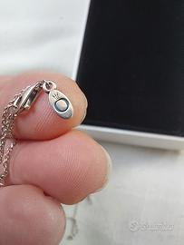collana lunga 45 cm, intreccio di cuoricini, uno argento, uno oro 14k.