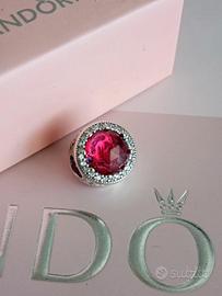 Questo magnifico ed originale charm a bottone si ispira alla mitica rosa de La Bella e la Bestia. Intorno al cristallo rosso ciliegia centrale sono incastonate le pietre taglio rosa come tributo al messaggio centrale della favola secondo il quale la vera bellezza è dentro ciascuno di noi.