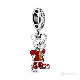 Vestito con una tradizionale giacca cinese changshan Topolino Disneys è pronto per il capodanno cinese. Per mantenere il suo look fresco Topolino indossa delle sneakers rosse e la sua giacca presenta dettagli con bottoni color oro. Per una dose extra di buona fortuna nel nuovo anno, la cauzione del ciondolo ha la forma di una moneta della fortuna cinese e rifinita a mano con zirconi. Abbina questo ciondolo Topolino in argento originale sterling con il charm Minnie Mouse coordinato.