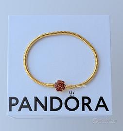 Pandora La Bella e la Bestia Bracciale Chiusura Rosa Incantata Murano Mis18