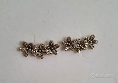 Orecchini Pandora usati solo un paio di volte. Si fissano al lobo, ma risalgono lungo l’orecchio. Realizzati in Argento Sterling 925, decorati con margherite impreziosite da pietre di zirconia cubica, sono rifiniti a mano. Consegna a mano zone Rovigo- Ferrara.