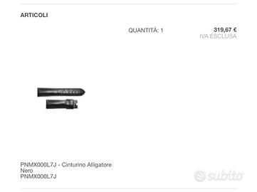 Vendo cinturino alligatore nero 24/22 nuovo mai indossato, comprato dal sito PANERAI a dicembre 2025. Allego foto del modello del cinturino e della fattura.