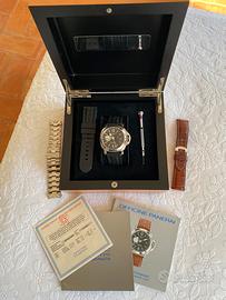 Appena revisionato, condizioni ottime nessun graffio o segno. Completo di scatola e documenti con cinturino in acciaio, pelle e gomma originali