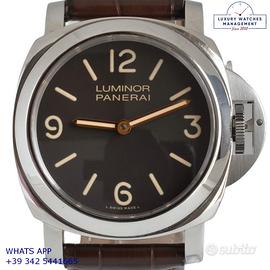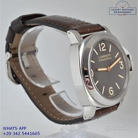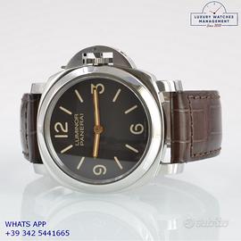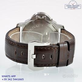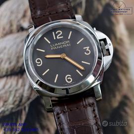 Panerai Luminor Marina PAM00390 acciaio, anno di produzione 2012, ghiera acciaio liscia, vetro zaffiro, quadrante colore marrone “Tobacco” indici e sfere al luminova, movimento meccanico a carica manuale, cinturino in alligatore colore marrone con fibbia acciaio originale Panerai, più altro cinturino in gomma colore nero originale Panerai.
