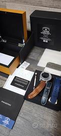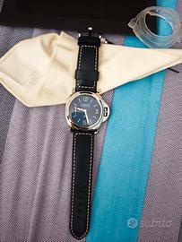 Vendo bellissimo Pam 01085 carica manuale 44mm colore blu mare. l'orologio è in ottime condizioni ed è stato usato molto poco. È stato acquistato nel luglio 2022, completissimo di tutto il suo corredo compreso scontrino di acquisto, libretto e garanzia panerai estesa fino al 2030. tutto documentato. nel prezzo sono compresi oltre i suoi due cinturini originali (pelle e caucciù) anche due artigianali del valore di euro 150 cadauno. astenersi perditempo non vendo per necessità ma solo per un eventuale cambio progetto in ambito orologiero.
