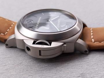 Originale Panerai Luminor ref.00176 cassa in titanio del diametro di 44mm esclusa corona,vetro zaffiro intonso,spettacolare quadrante "sandwich",movimento a carica manuale perfettamente funzionante e preciso (revisione documentata giugno 2025).Orologio in condizioni assolute di pari al nuovo senza il minimo difetto corredato da controscatola,scatola,cacciavite,libretto Panerai,gommone proteggi cassa,tutti gli stikers,2 cinturini perfetti (caucciu verde,pelle testa di moro) e garanzia ufficiale Panerai di concessionario tedesco datata anno 2013.