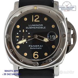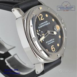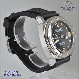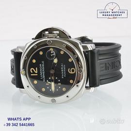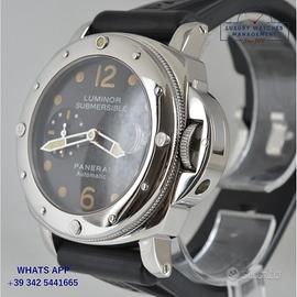 Per conoscere il prezzo e le caratteristiche tecniche dei nostri orologi visita il nostro sito ufficiale: https://lwmitalia.com/it Tutti i nostri orologi vengono verificati e revisionati dal nostro laboratorio specializzato “KeepTime Lab”: https://keeptimelab.com/it/ Panerai Luminor Submersible PAM00024 acciaio lucido, anno di produzione 2000, ghiera unidirezionale acciaio lucido senza scala graduata, vetro zaffiro antiriflesso lente ciclope, quadrante colore nero con data e contatore dei secondi a ore 09:00 indici e sfere al trizio, movimento meccanico a carica automatica, cinturino in gomma colore nero con fibbia acciaio originale Panerai, più altro cinturino in coccodrillo lucido colore nero modello Panerai. Orologio Panerai originale in ogni sua parte, molto raro al trizio, revisionato in ottime condizioni, segni di usura assenti o appena visibili, full set (scatola, accessori vari, garanzia card ufficiale Panerai), garanzia/dichiarazione di vendita nostro negozio valida per 12 mesi.