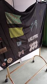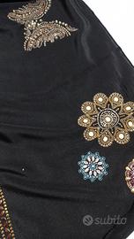 Pannello in pura seta nera con splendide applicazioni in strass e cristalli – Pezzo unico per creazioni moda!
