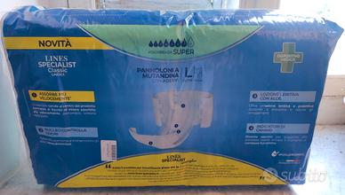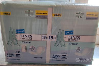 - 7 confezioni di pannoloni a mutandina con adesivi LINES SPECIALIST CLASSIC UNISEX TG L, confezione da 30 pezzi (€10 a confezione)