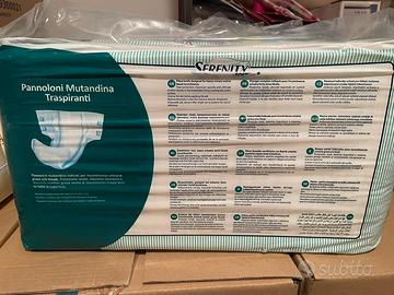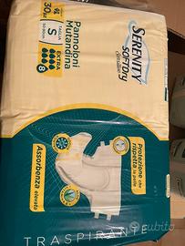 Vendo pannoloni mutandina traspiranti Serenity Soft Dry+ taglia S e M, 30 pezzi a confezione. Disponibili varie confezioni mai aperte. Vendo ad euro 15 a confezione oppure 50 euro per scatolone da 4 confezioni (120 pezzi) Consegna di persona zona Bergamo provincia, Brescia, Milano est