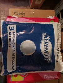 Vendo 7 pacchi, solo ritiro a carico dell'acquirente. Il prezzo si riferisce a tutti e 7. Incluso un pacco di mutandine elasticizzate taglia XL.