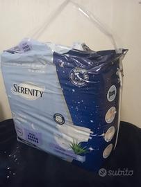 Pacco di pannoloni taglia L Serenity,modello mutandina a strappo, assorbenza massima 10 gocce, consigliati a chi già li conosce o li usa abitualmente.