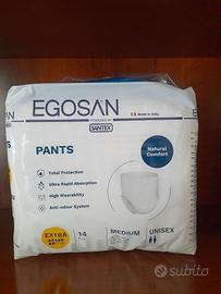 VENDO n.28 confezioni (30 pezzi cad.) di traverse salvaletto Egosan misura 80x180 (€.8,00 cad) (foto n.1) n.10 confezioni (14 pezzi cad.) di Pannoloni a mutandina Egosan misura Medium – ExtraDry (€.7,00 cad) (foto n.2) Spedisco + s.s.