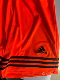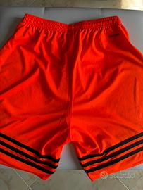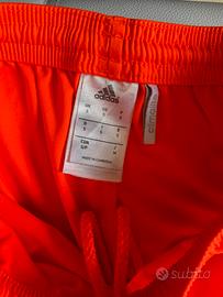 Vendo pantaloncini unisex sportivi Adidas originali in colore arancione acceso con iconiche tre strisce nere orizzontali sulla parte inferiore. • Tecnologia: Climalite (tessuto traspirante e leggero, ideale per sport, corsa o calcio). • Dettagli: Logo Adidas ricamato in nero, elastico in vita con laccetti regolabili. • Condizioni: nuovi • Taglia: S . • Colore: Arancione neon / fluo con dettagli neri. Perfetti per l'allenamento estivo o per un look sporty-vintage. Spedizione rapida!