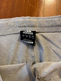 Pantaloncini Adidas, grigi chiari, taglia M. I pantaloncini sono usati e presentano evidenti segni di usura, come si vede nelle foto. Inoltre è importante evidenziare come l'elastico in vita è lasco, non più rigido.
