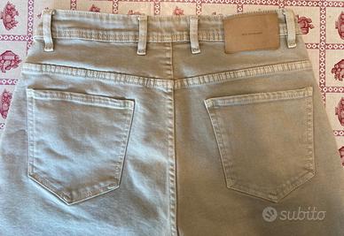 ✨ Dettagli del capo: Marca: Zara Modello: Pantaloncini/Bermuda classico a 5 tasche, chiusura frontale con zip e bottone logato. Patch "zara denimwear" applicata sul retro. Colore: Beige / Sabbia chiaro (tonalità neutra ed elegante). Taglia: EUR 40 / USA 31 / MEX 31 (corrisponde indicativamente a una 44 italiana). Materiale: Denim di cotone resistente. Condizioni: Eccellenti! Usati pochissimo e tenuti con cura. Non presentano sbiaditure, macchie, strappi o segni di usura. 📏 Misure esatte (prese con il capo steso in piano): Vita (da lato a lato): 40 cm Lunghezza totale della gamba: 50 cm