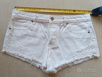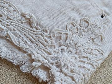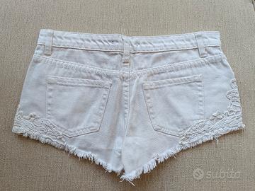 Pantaloncini di jeans bianchi con decorazioni in pizzo.