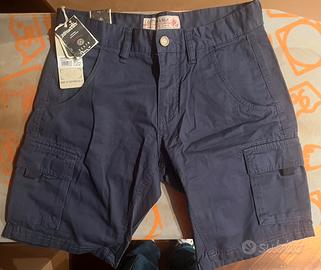 Vendo un paio di pantaloncini nuovi cargo color blu navy, taglia 44. Questi pantaloncini sono in ottime condizioni e presentano un design pratico e alla moda, caratterizzato da comodi tasconi laterali. Ideali per un look casual e avventuroso, offrono spazio extra per riporre piccoli oggetti.