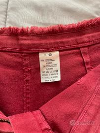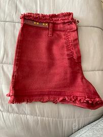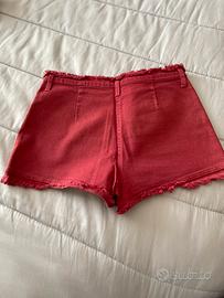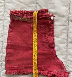 Pantaloncini corti, vintage, in jeans elasticizzato, con bordi sfrangiati in vita e in giro gamba. Taglia 40