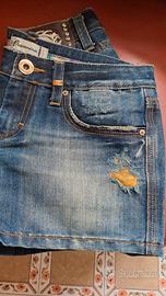 pantaloncini corti con strappi ad hoc da cui si vedono fili colore oro