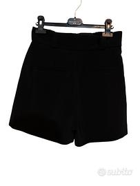 Pantaloncini da donna eleganti neri Pantaloncini da donna di colore nero, dal taglio elegante e moderno. Vita alta con passanti decorativi e dettagli metallici. Tessuto leggero e confortevole, perfetto sia per outfit casual che più raffinati. Condizioni: ottime, indossati poche volte. Taglia: S/IT 40/EU 36 Ideali per la stagione primaverile/estiva, facili da abbinare con camicie, top o blazer.