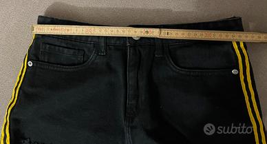 Pantaloncini di jeans Tally Weijl taglia 38 (vedi misure in cm nelle immagini). Indossati pochissimo pari al nuovo, con bande color oro laterali.