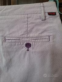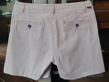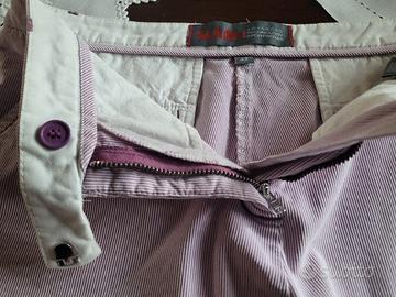 pantaloncini da donna, ottima qualità, ben rifiniti, ottime condizioni materiale: cotone 98% elastan 2% marchio SLAM colore millerighe bianco e lilla taglia 42