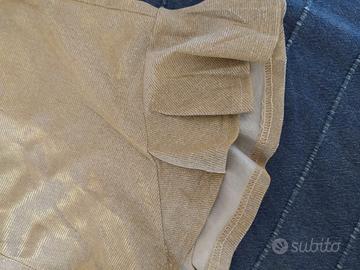 Pantaloni corti color oro, luminosi e leggeri. Zip di chiusura. Etichetta S, misure in foto