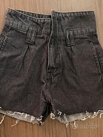 Pantaloncini in denim con un lavaggio scuro. - Vita alta - Orlo sfrangiato - Tasche anteriori