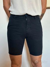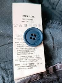 Pantaloncini da uomo Imperial blu notte con una distintiva banda laterale multicolore. Taglia 42 da uomo. Banda laterale rossa, bianca e blu. Tasche laterali. Chiusura con zip e bottone.