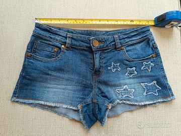 Pantaloncini di jeans decorati con stelle. Marca: Tezenis Taglia: S Ottime condizioni. Rimango a disposizione per qualunque informazione.