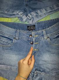 Vendo set di due pantaloncini di jeans Alcott come da foto. Vestono taglia 42-44 italiana entrambi. Sono simili ma si differenziano per colore e per chiusura. In uno i bottoni sono nascosti mentre nell'altro sono tutti visibili (come da foto). Comodissimi e usati pochissime volte.