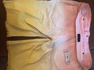 Vendo pantaloncini jeans John Richmond colorati rosa e giallo in sfumatura, molto belli. Taglia 28, corrisponde ad una 42, vendo a malincuore per cambio taglia prezzo euro 10 oltre spese di spedizione