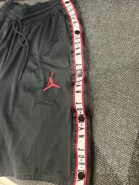 Vendo pantaloncini Jordan originali in taglia S. Colore nero con dettagli rossi e logo Jumpman ricamato. Fascia laterale con scritta “Jordan” su entrambi i lati. Realizzati in tessuto tecnico traspirante, ideali per lo sport o per un look casual.