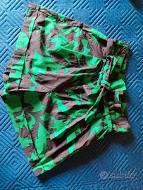 Pantaloncini Motivi in cotone verde e nero, taglia 42, vita alta, tasche laterali e cinturino. Ottime condizioni.