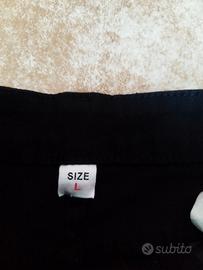 Modello: Pantaloncini neri a vita alta Materiale: Denim Dettagli: Borchie argentate su tutta la superficie (borchie rotonde e borchie piramidali) Condizioni: Ottime condizioni, indossati solo un paio di volte Taglia: L Orlo: Orlo grezzo sfrangiato
