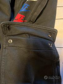 Shorts Nike cargo di tuta elasticizzati. Taglia probabile S (dato che l’etichetta è stata tagliata) ma in caso di maggiorni infomazioni riguardo la misura contattarmi in chat. Pantaloncini con qualche segno di usura e con un bottone mancante (come in foto).