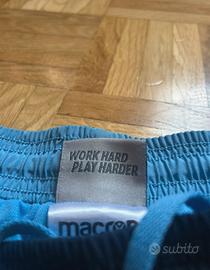 Vendo pantaloncini ufficiali S.S. Lazio, realizzati dallo sponsor tecnico Macron. Colore blu navy con dettagli in celeste Lazio. Logo del club e logo Macron perfettamente conservati. [Dettagli Prodotto] • Brand: Macron (Official Merchandising). • Design: Elastico in vita con laccetti regolabili celesti. Presente l'iconico motto "Work Hard Play Harder" sull'etichetta interna. • Condizioni: Ottime, come da foto. Tessuto tecnico leggero e traspirante, ideale sia come pantaloncino sportivo che come costume da bagno. • Tasche: Presenti (comodissime per l'uso quotidiano). [Consiglio] Un pezzo immancabile per ogni laziale, perfetto per il calcetto, la palestra o per il mare durante l'estate. Spedizione rapida in tutta Italia!